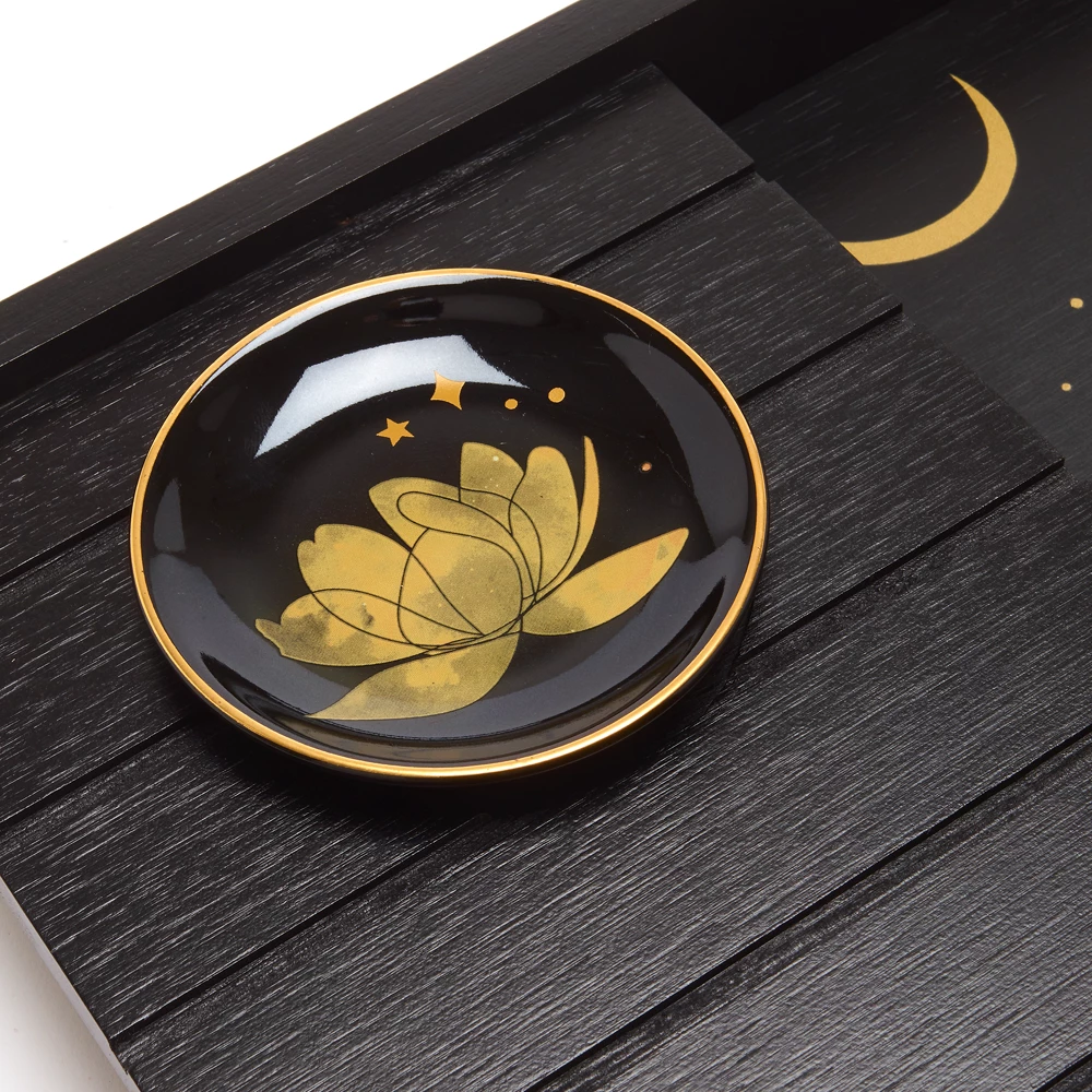 - Verre, plateau en bambou, assiette en céramique et serviette 100 % coton