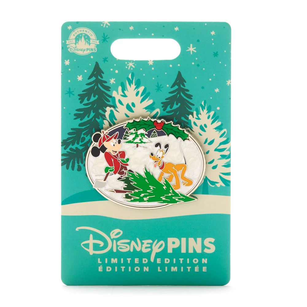 Mickey et son loyal compagnon Pluto se préparent pour la saison des fêtes ! Ce pin’s en édition limitée représente les deux amis dans un style classique.